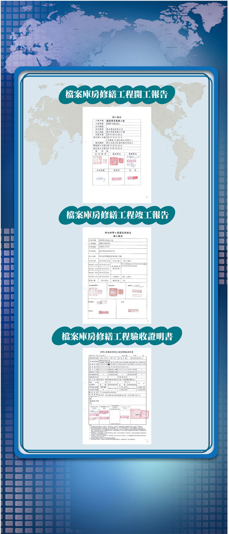 > 檔案實景 > 檔案庫房修繕各項證明及審核文件